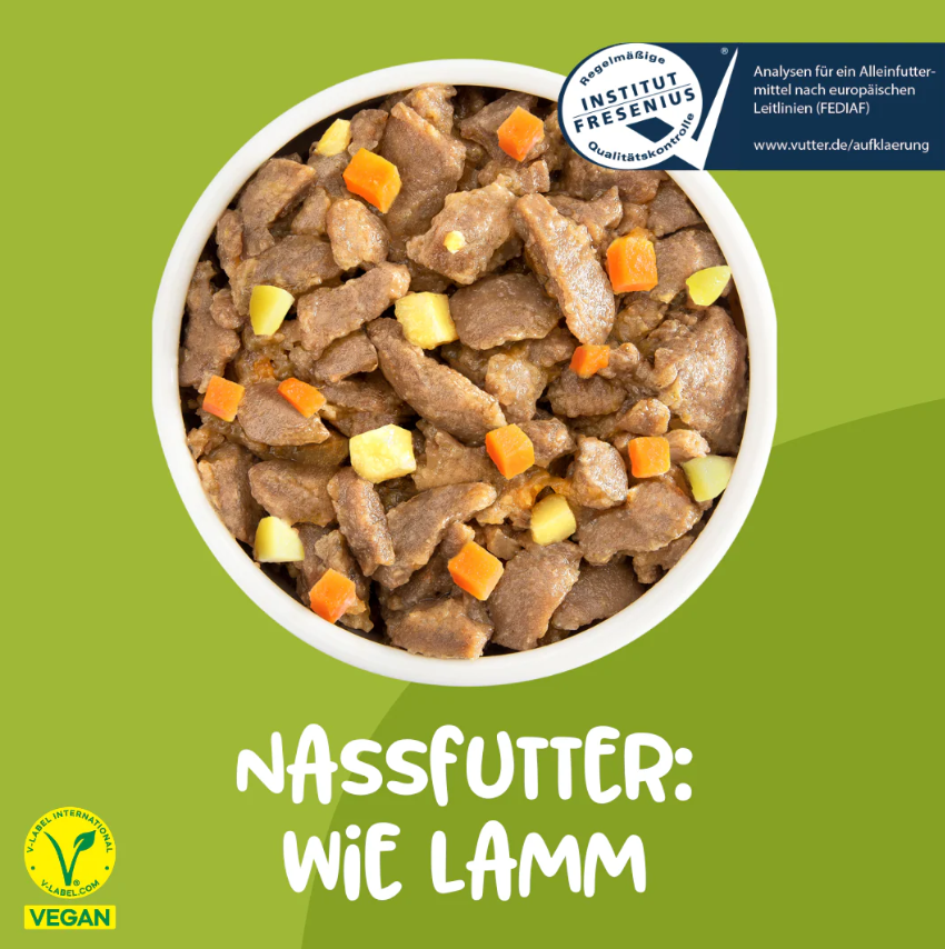 Vutter Natvoer: Like Lamb overtuigt met zorgvuldig geselecteerde ingrediënten en een onweerstaanbare smaak die in niets onderdoet voor conventioneel vleesvoer. Dit veganistische complete voer is ontwikkeld om optimaal aan de individuele behoeften van je trouwe viervoeter te voldoen en biedt een hoogwaardig alternatief zonder enige concessies.